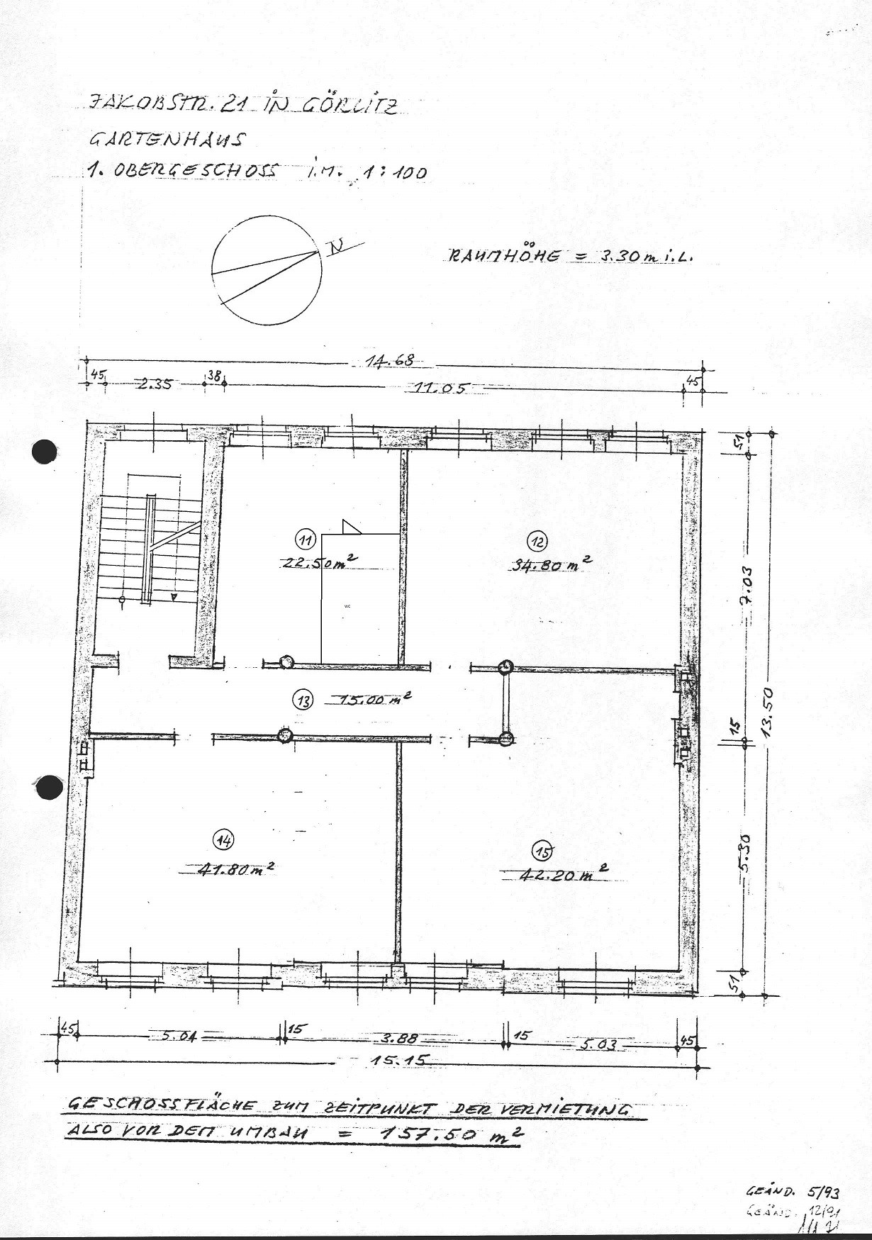 Die Gewerbeeinheit im 1. Obergeschoss verfügt über drei Räume und ein Bad.