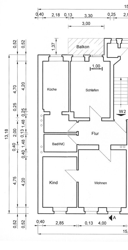 3 RWE im ruhigen Hinterhaus mit Balkon