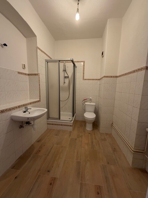 Das Wohnhaus besteht aus 4 Geschossen, einem Dachboden und unterteilt sich in 8 Wohneinheiten sowie 1 Gewerbeeinheit im EG. Das Gewerbe besticht durch einen separaten Eingang auf der Straße sowie mit einer Alarmanlage. Vom Hausflur aus gelangt man, nach einer separaten Tür in das Treppenhaus. Im 1. Obergeschoss befinden sich 3 Wohnungen mit einer Größe von 33 bis.61 m². Diese sind aufgeteilt in zwei – 2 Raumwohnungen und eine 3 Raumwohnung. Das 2. OG ist in zwei 2 Raumwohnungen mit einer Größe von 61 bzw. 74 m² aufgeteilt. Im 3. OG befinden sich wieder 3 Wohnung. Dabei handelt es sich um zwei – 2 Raumwohnungen sowie eine 3 Raumwohnung mit einer Größe von 33 bis 61 m². Die Wohnungen weisen einen teilweise Sanierungsbedarf auf. Der Dachboden ist als zusätzlicher Lagerraum vorgesehen und in einzelne Parzellen unterteilt. Der Keller ist trocken und ebenfalls als Lagerraum für die Mieter angedacht. Hier befindet sich ein Waschraum mit einzelnen Waschmaschinen – Plätzen.