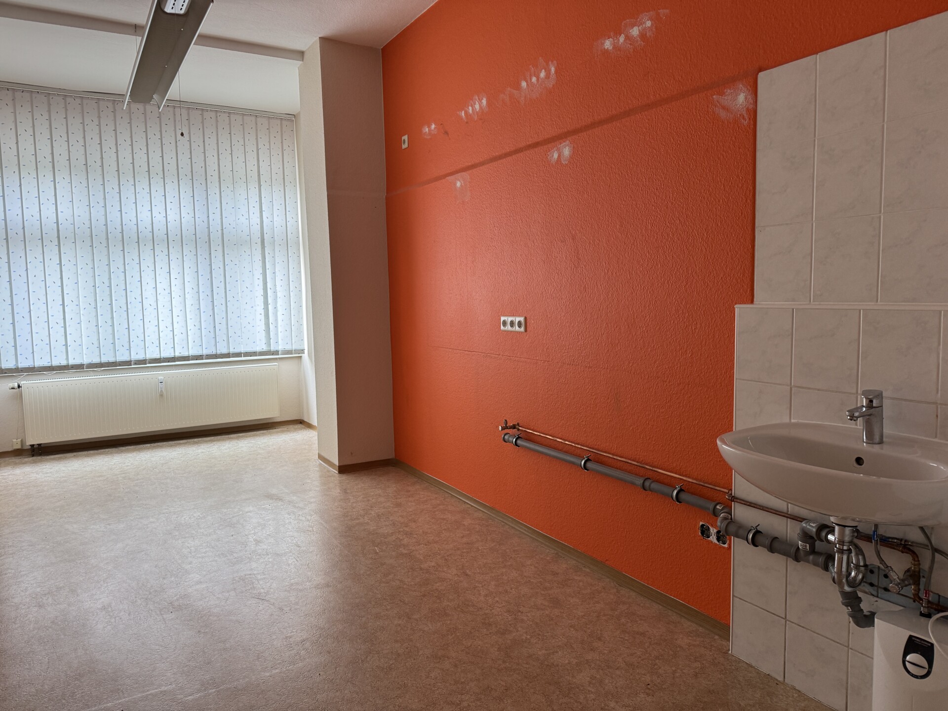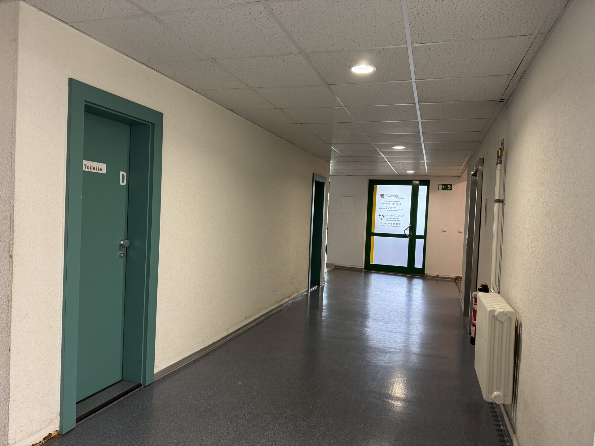 Die teilsanierte Einheit befindet sich in einem Ärztehaus in Weinhübel, in diesem sind Physio- und Ergotherapeuten, Allgemeinarzt, Lager und Büroräume sowie eine Alterspflege ansässig. Sie besteht aus 3 Räumen welche zum Parkplatz hin ausgerichtet sind,- in zweien sind Waschbecken vorhanden. Des weiteren gibt es ein innenliegendes Zimmer ebenfalls mit Waschbecken und 2 WC`s.