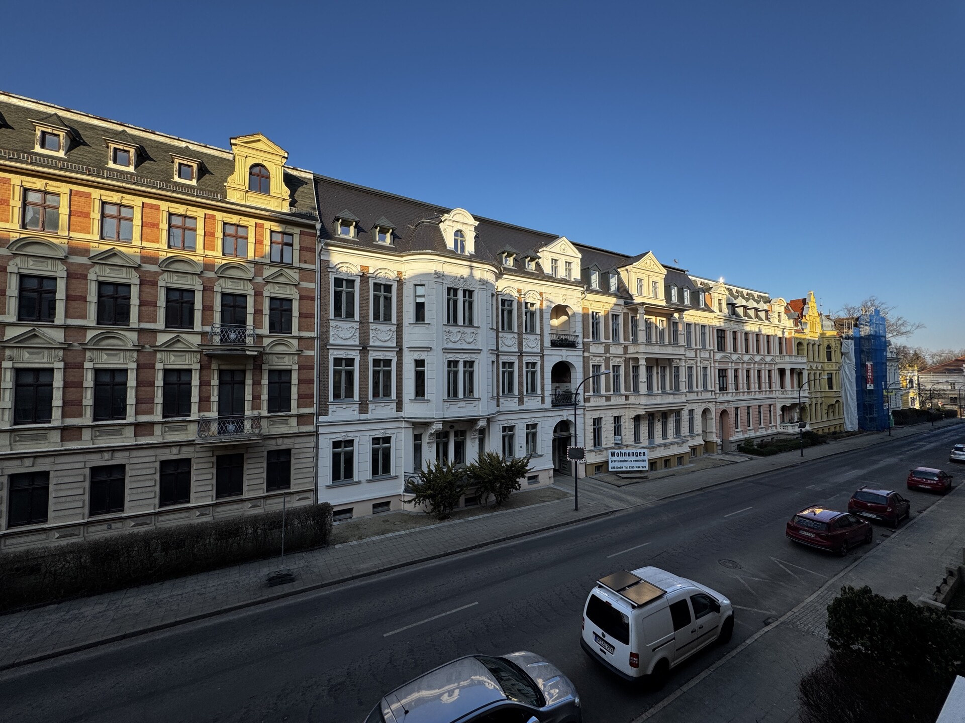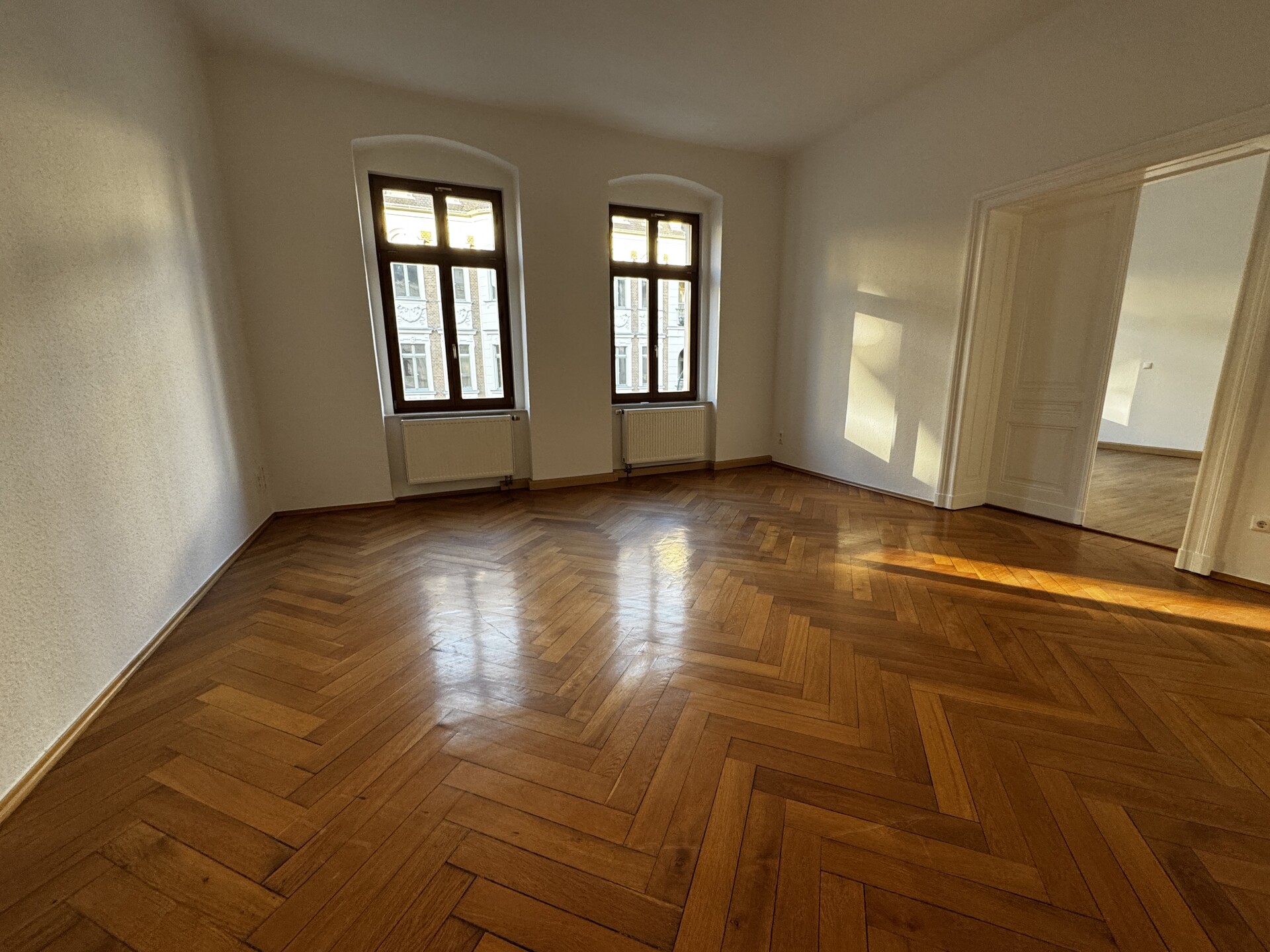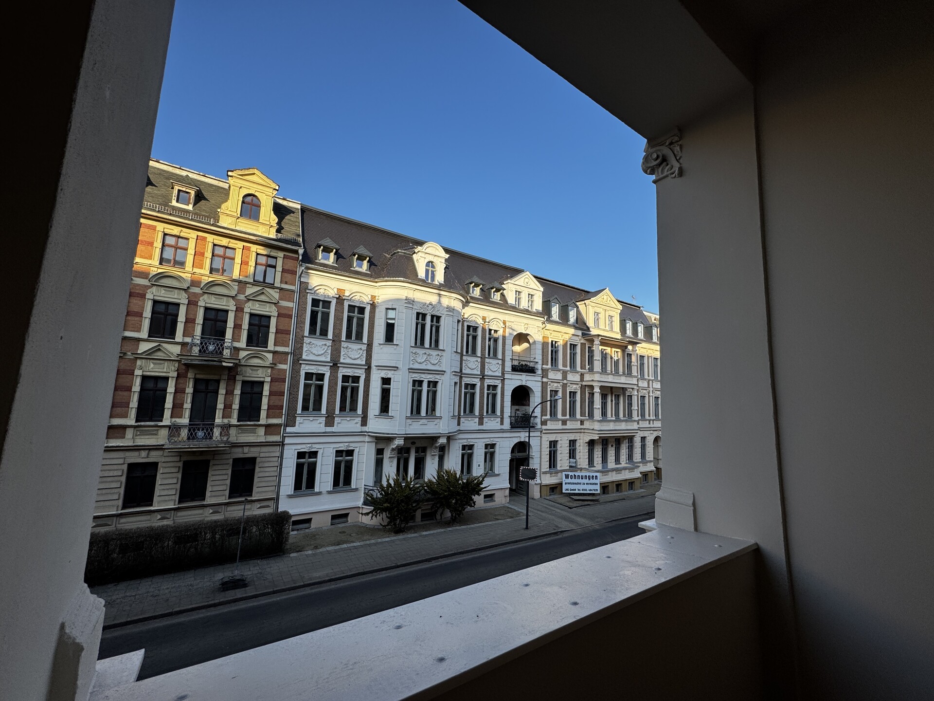 Wunderschöne lichtdurchflutete Wohnung in stilvollen Altbau zu vermieten. Frisch renoviert wartet sie auf den neuen passenden Mieter: Parkettfußboden im Wohnbereich, mit Zugang durch die Flügeltüren im großzügigen Schlafzimmer. Von dort aus gelangt man in einen Vorraum mit Waschmaschinenanschluss sowie als Eingang zum Wannenbad dient. Ein separates Gäste WC befindet sich im Flur. Die Küche ist geräumig und bietet den Zugang zum überdachten Balkon mit Blick auf die neu sanierten Häuser der Schillerstraße. Tolle neue 4 Wände warten auf SIE!